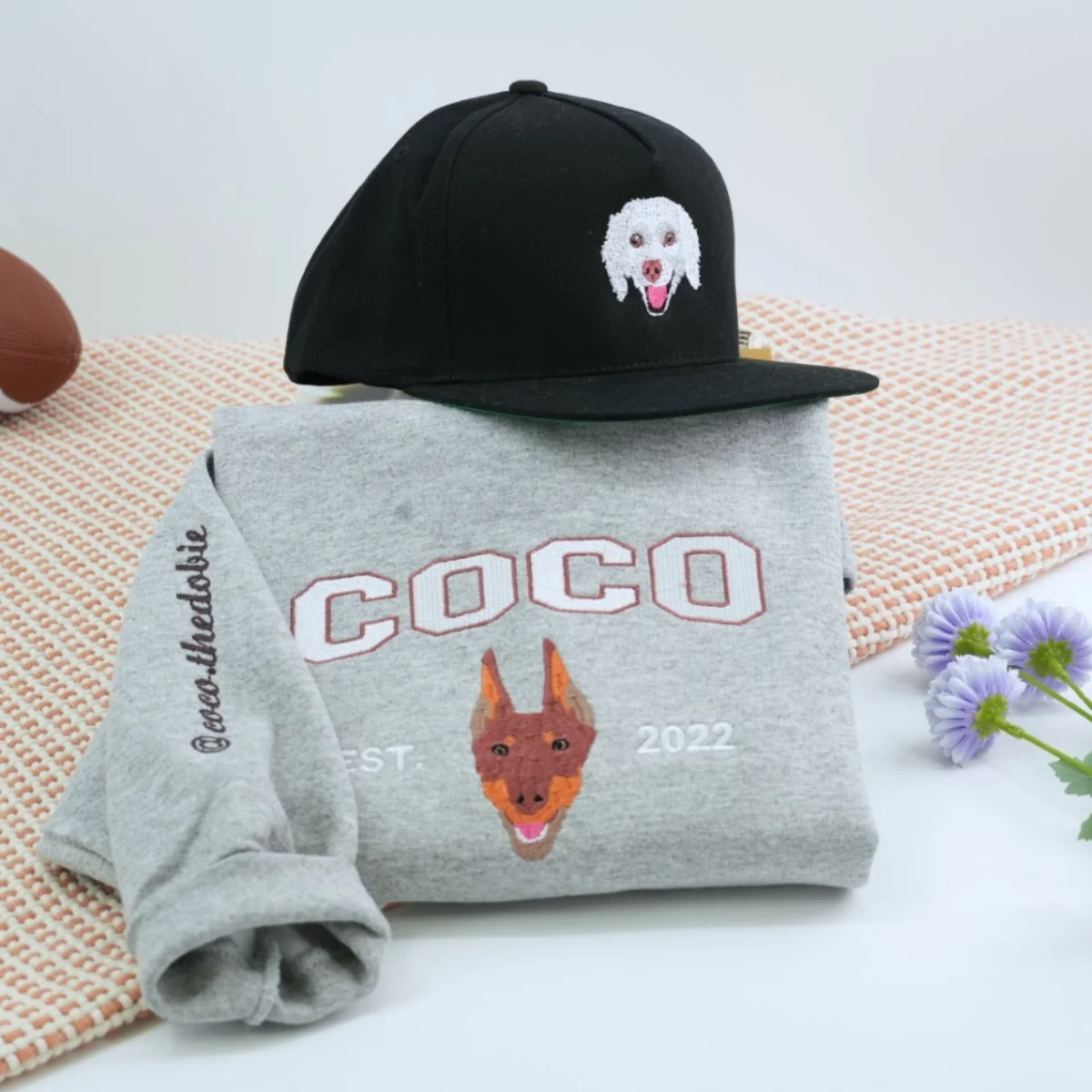 Custom Pet Portrait Sweatshirts - Dog Name Varsity EST Embroidered Shirts - Dog Lover Gift