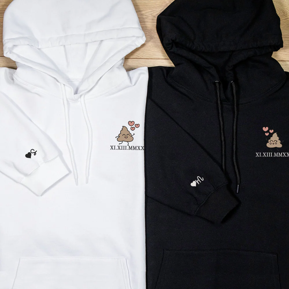 Cute Shit Cartoon Custom Roman Numeral Matching Embroidered Hoodies For Couples