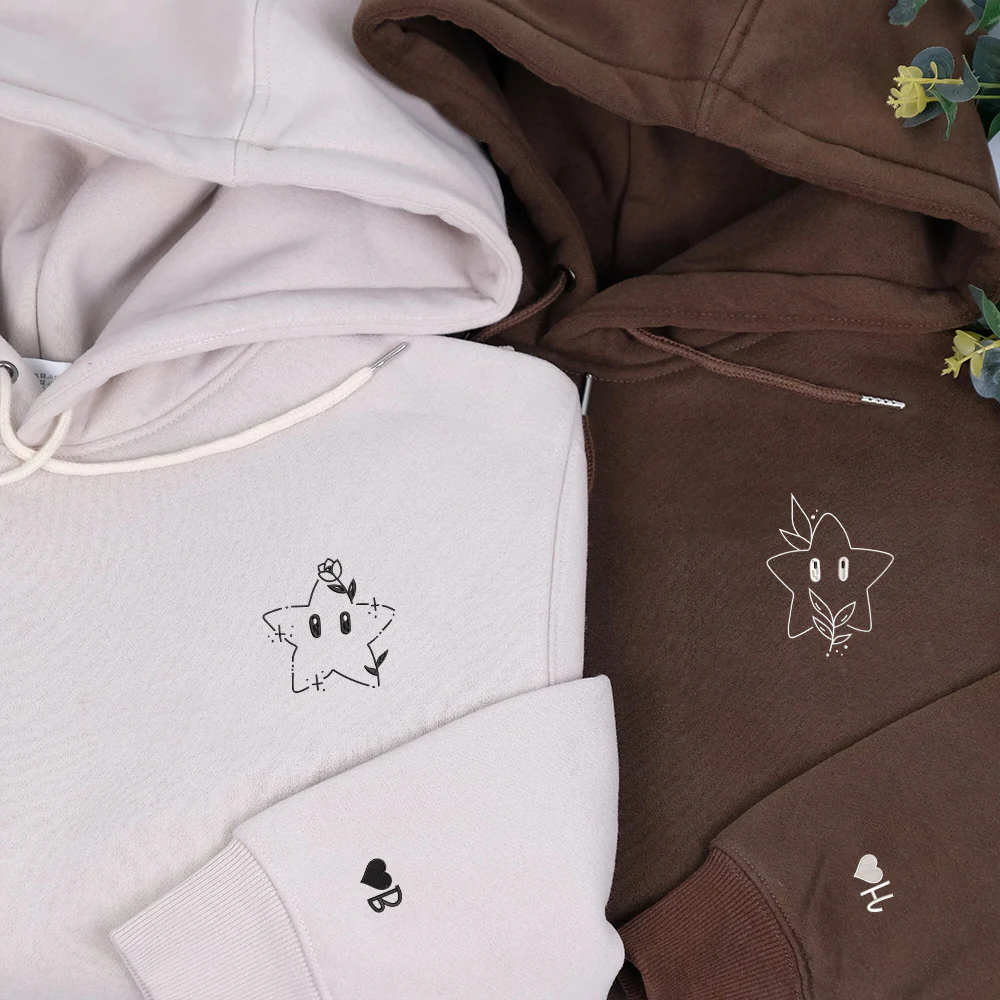 Cute Stars Cartoon Custom Embroidered Matching Hoodies For Couples
