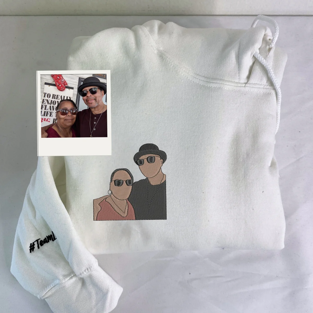 Custom grandma family portrait hoodie with beautiful embroidered design featuring your loved ones. Perfect personalized grandmother gift showcasing family bonds. Premium quality sweatshirt with detailed embroidery from your family photo. Ideal for birthdays, Mother's Day, Christmas, or any family celebration. Keep your family close to grandma's heart with this meaningful custom hoodie featuring everyone she loves most.